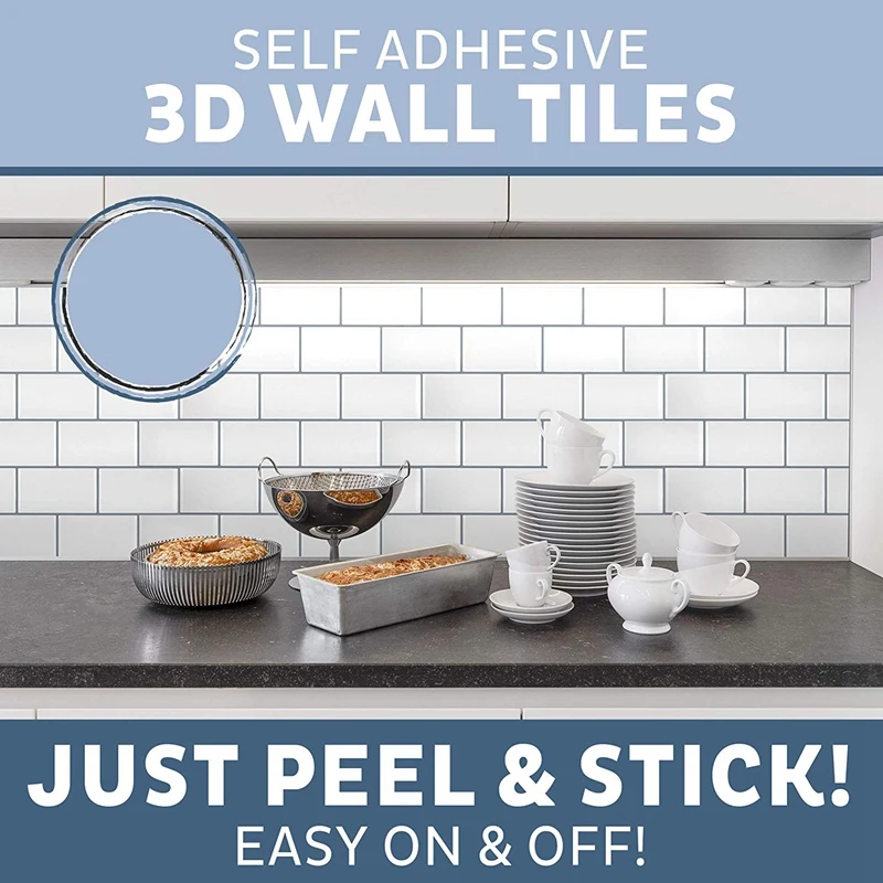 Peel and Stick Backsplash 10X10 Inch Removable 3D Subway Wall Tiles (Pack of 4)for Kitchen or Bathr