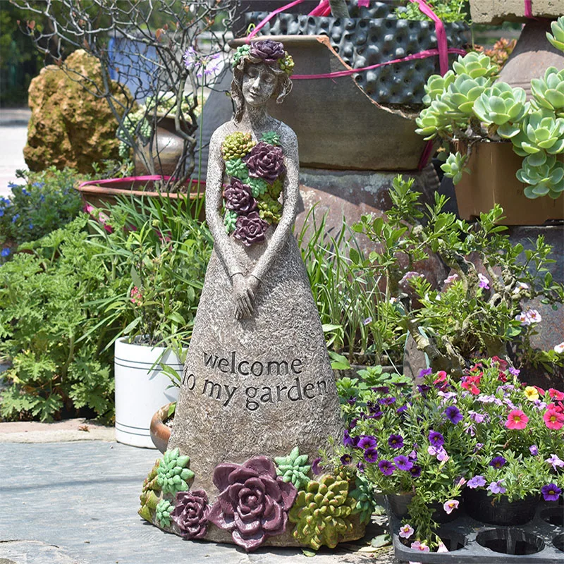 Hot Sale Garden Decor Courtyard Pretty Girl Wearing A Succulent Skirt Garden Park Outdoor Landscape Sculptur